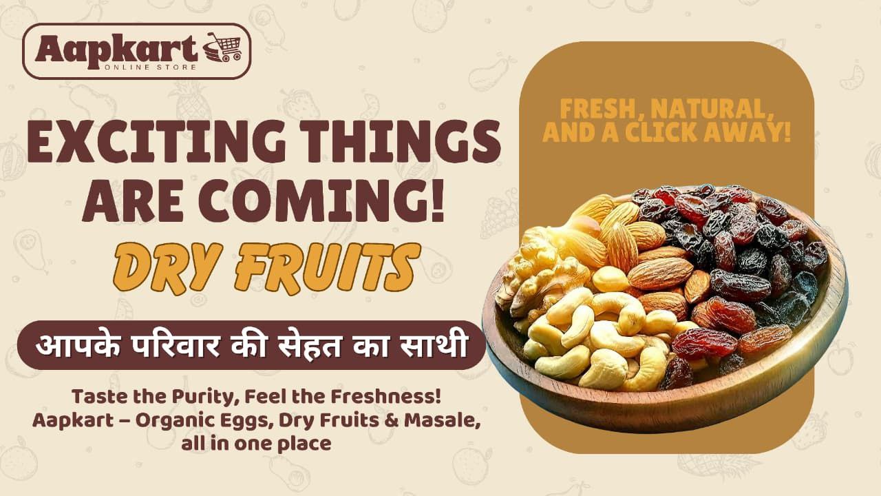 Exciting things are coming! Stay tuned or our upcoming range of dry fruits and masale, carefully selected to meet the highest standards of quality and taste.Aapkart – Fresh, Natural, and Just a Click Away!